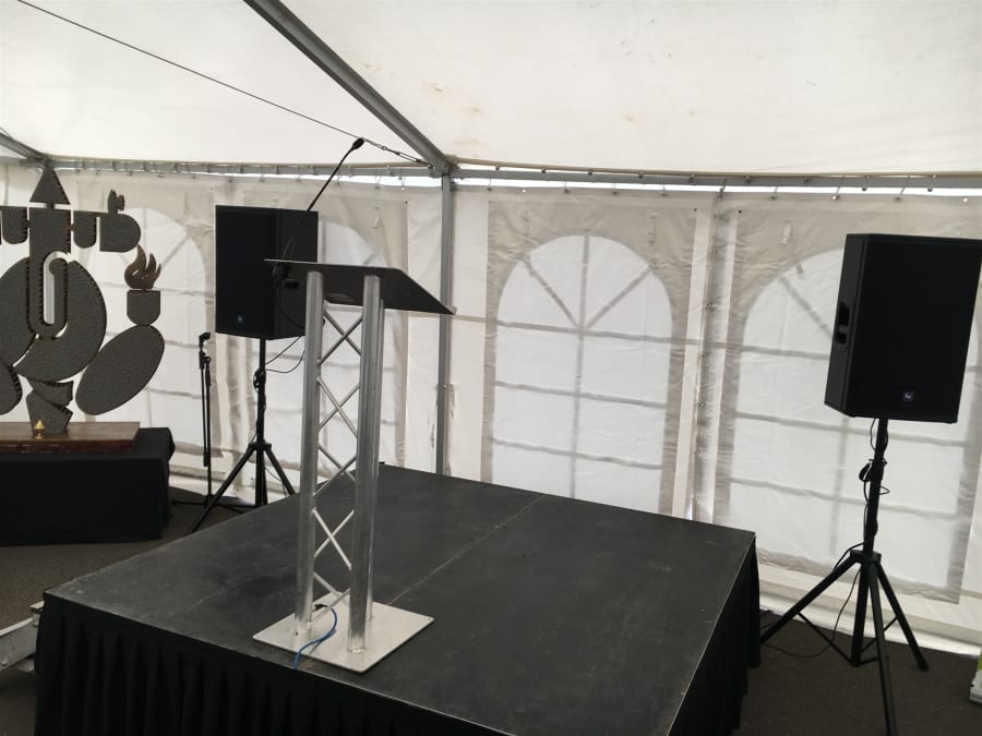 We hire line array PA systems, festoon lighting, battery-powered uplighters, lecterns, and generators from 2.2kVA to 30kVA. Our partner company Staging Events also provides event logistics, electrical distribution, on-site refuelling, and MC/compare services.