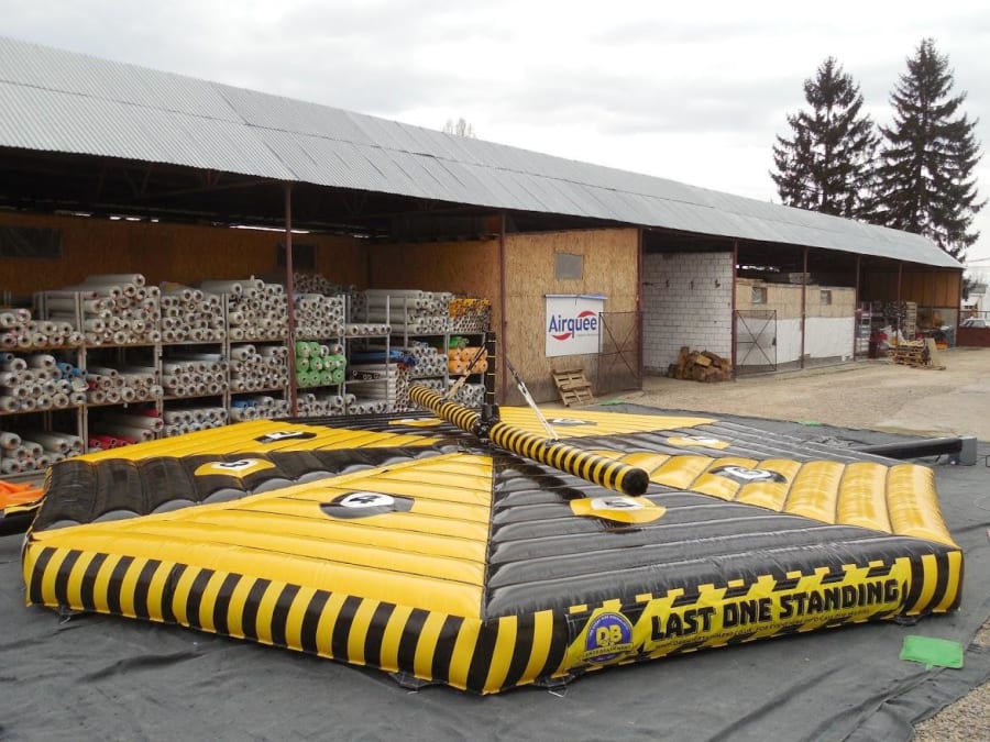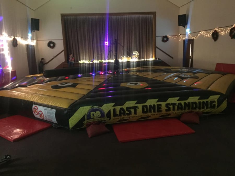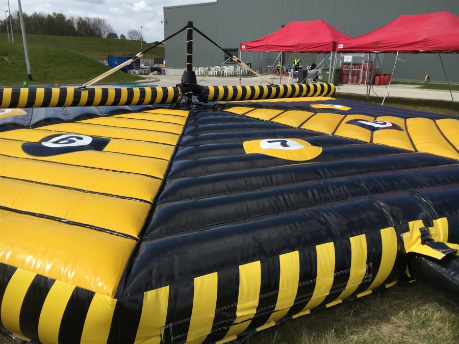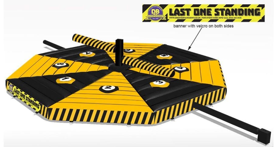 With a 9.4metre x 9.4 metre Bed, this Inflatable is designed to play with teams of 8 at a time or as an everyone for themselves!