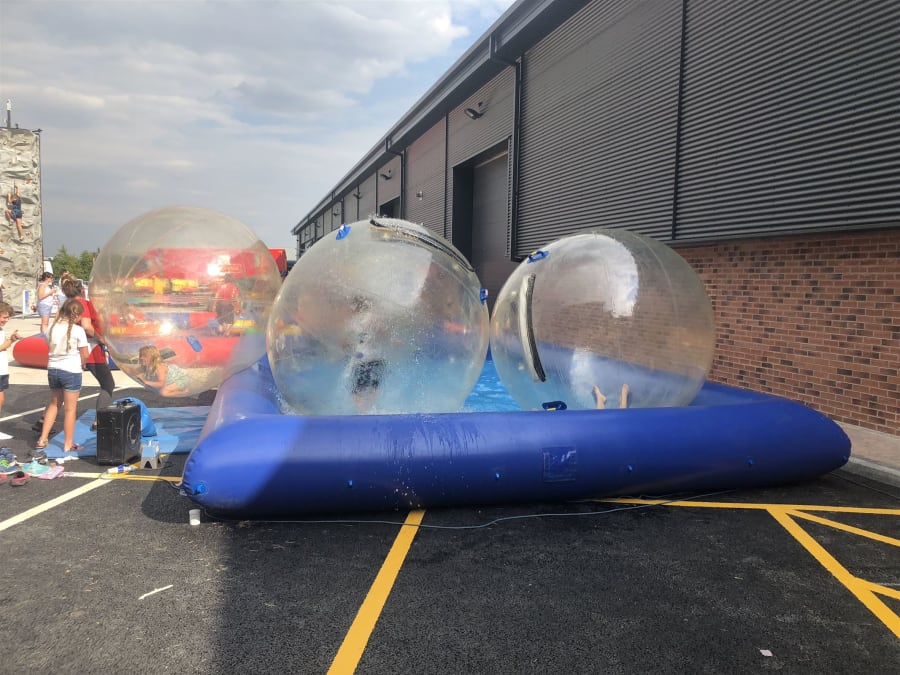 Here are water zorbs which happen in a inflatable sealed water pool. Please note we need access to water up to 24 hours prior to your event start time.