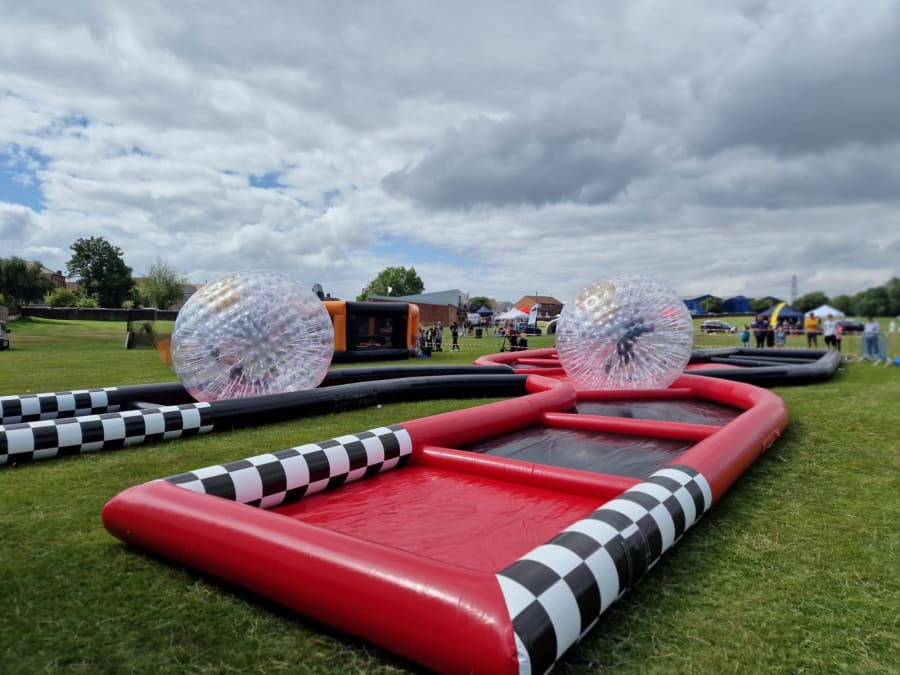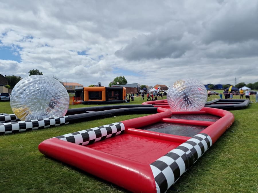 When you hire our Land Zorb Balls, participants enter the large inflatable zorbs and navigate through our inflatable course. By shifting their body weight, they propel the zorb in their desired direction. But beware—it's not as easy as it seems! Our inflatable course is wide enough to accommodate racing, making it perfect for fun days, team building activities, or friendly competitions.