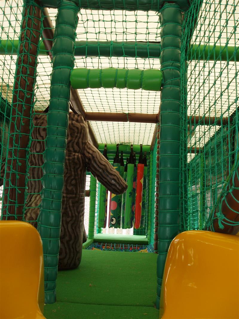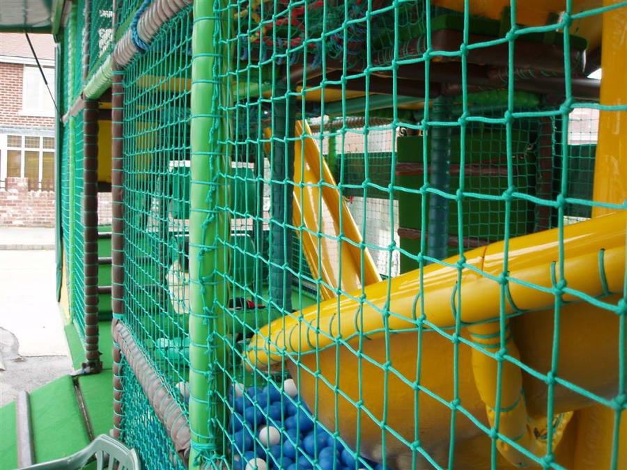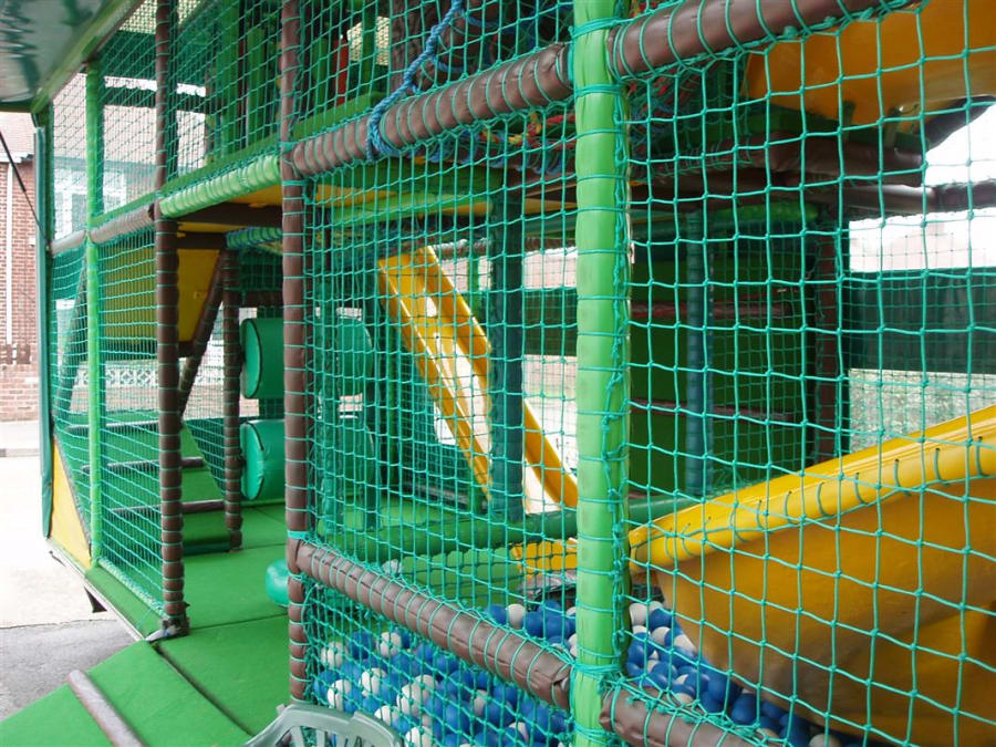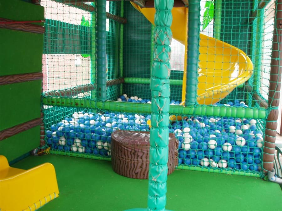 Attendants allow only a certain number of children in at a time to play. There is full side horning to provide protection from jumps or falls. There are also two entrances/exits for safety purposes.