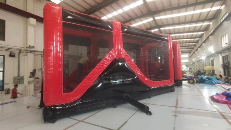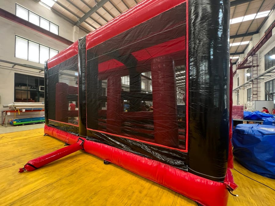 The Red and Black Mega 100ft Assault Course is an incredible feature that will keep your guests entertained for hours on end. With its imposing 100ft length, this course is designed to push competitors to their limits, and the vibrant red and black colours will make it stand out from the crowd.