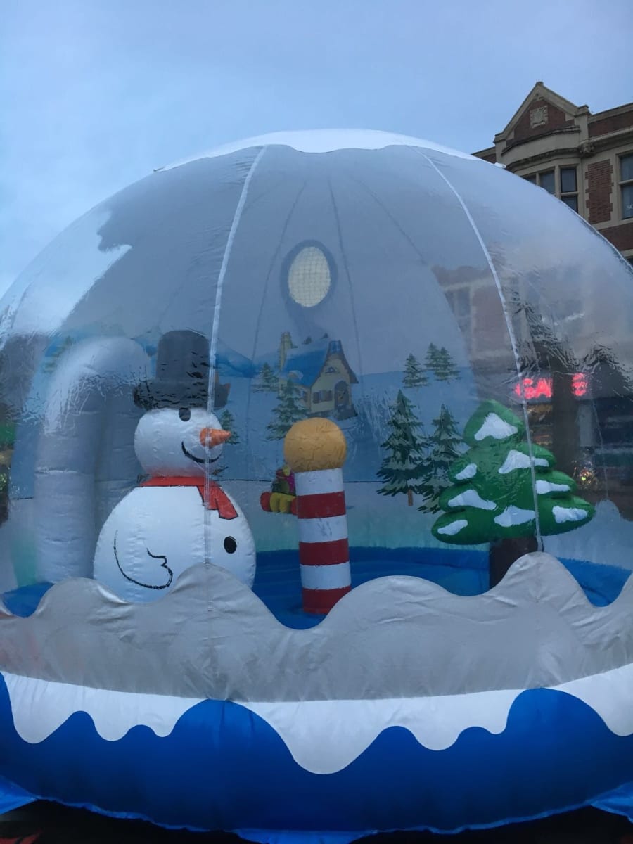 Here we have our inflatable Giant Snowglobe ideal for the perfect photo opportunity. The theme is set and we can even supply artificial snow to swirl inside this is great for any occasion including Christmas markets, corporate Christmas parties.