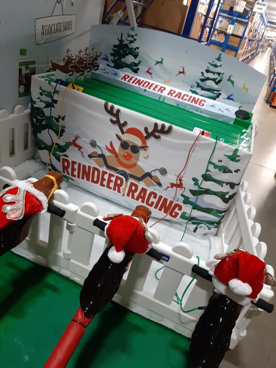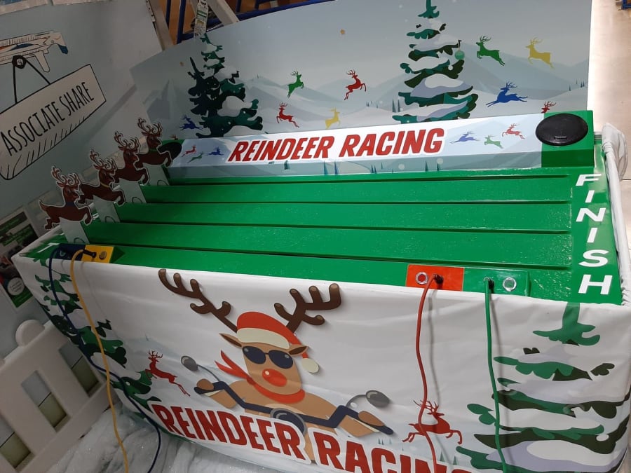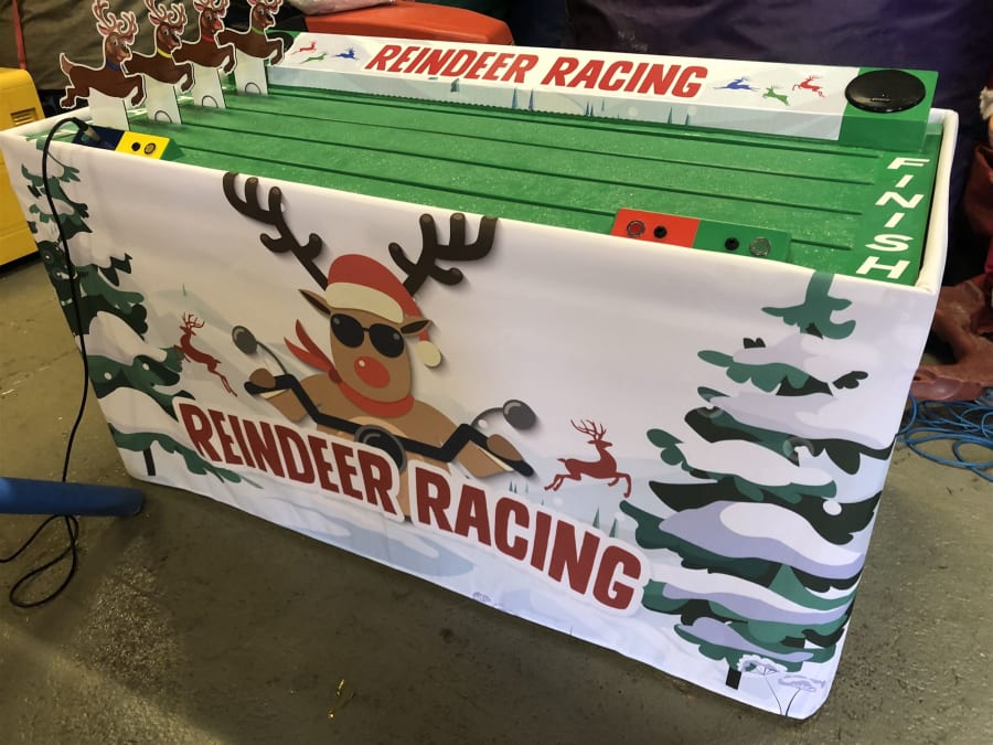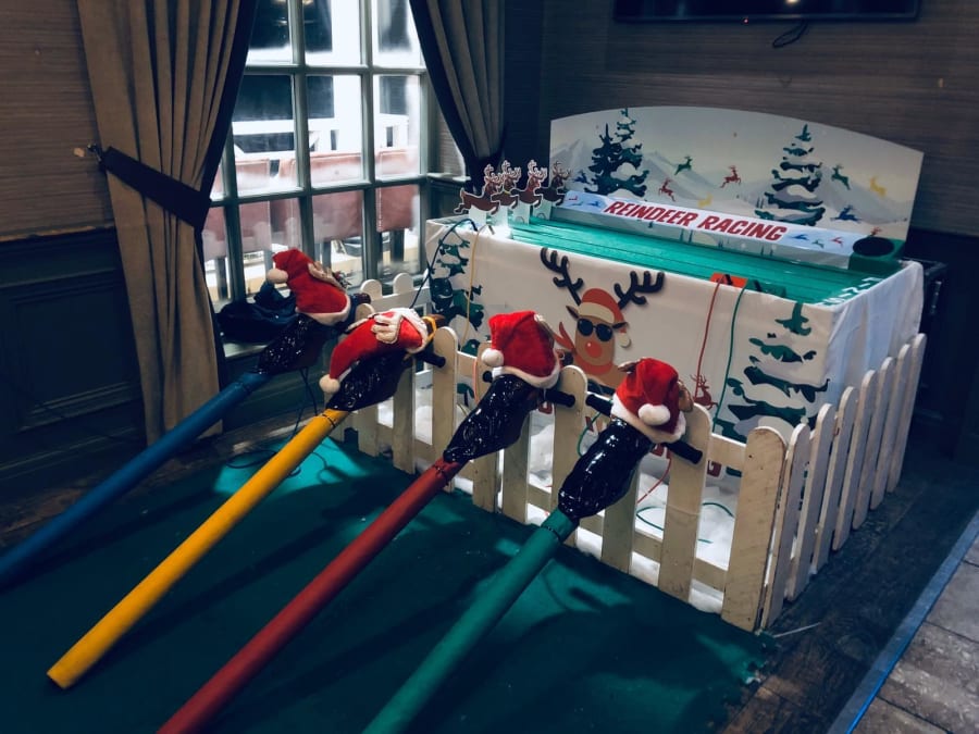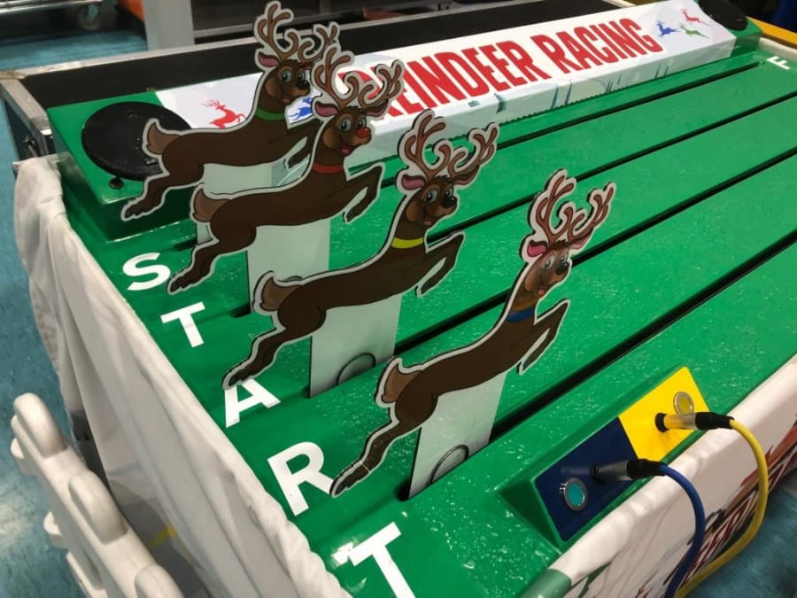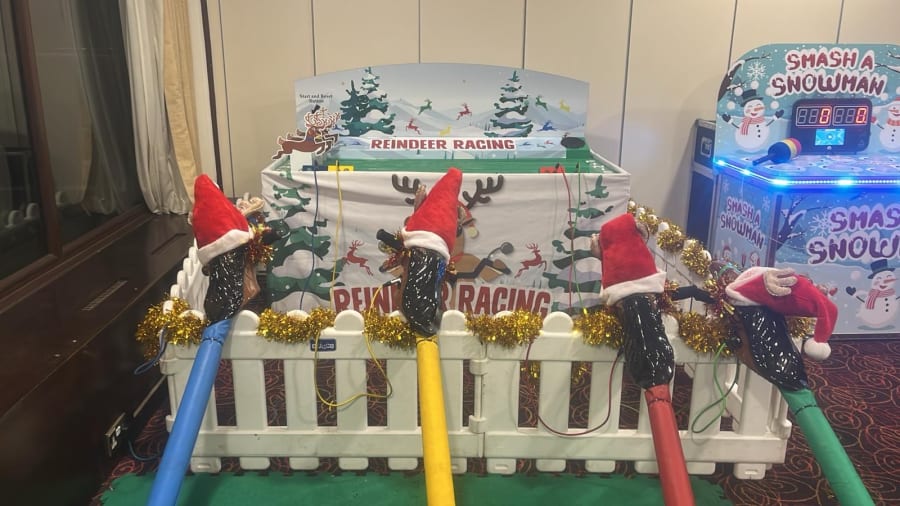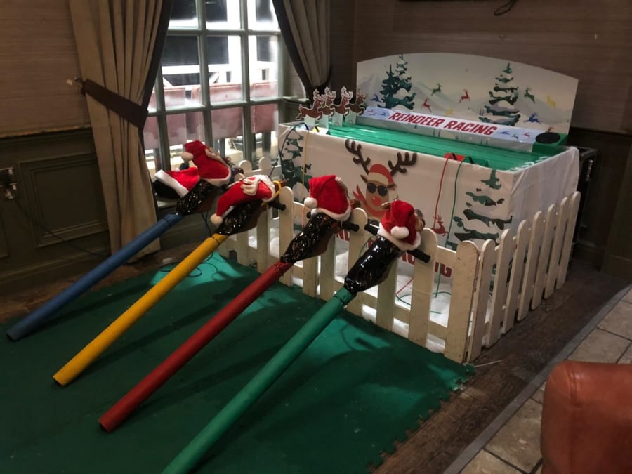 Our new Reindeer racing game is an exciting and energetic game for 4 players that is an essential part of any Christmas party, Wedding or Corporate Event.