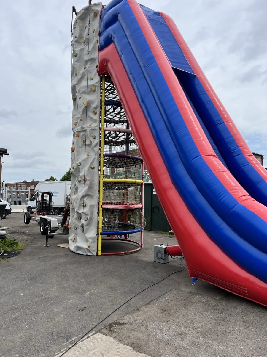 Spider Mountain Hire also known as Infinity Tower hire combining optional Climbing Wall This Now comes with brand new death drop slide!