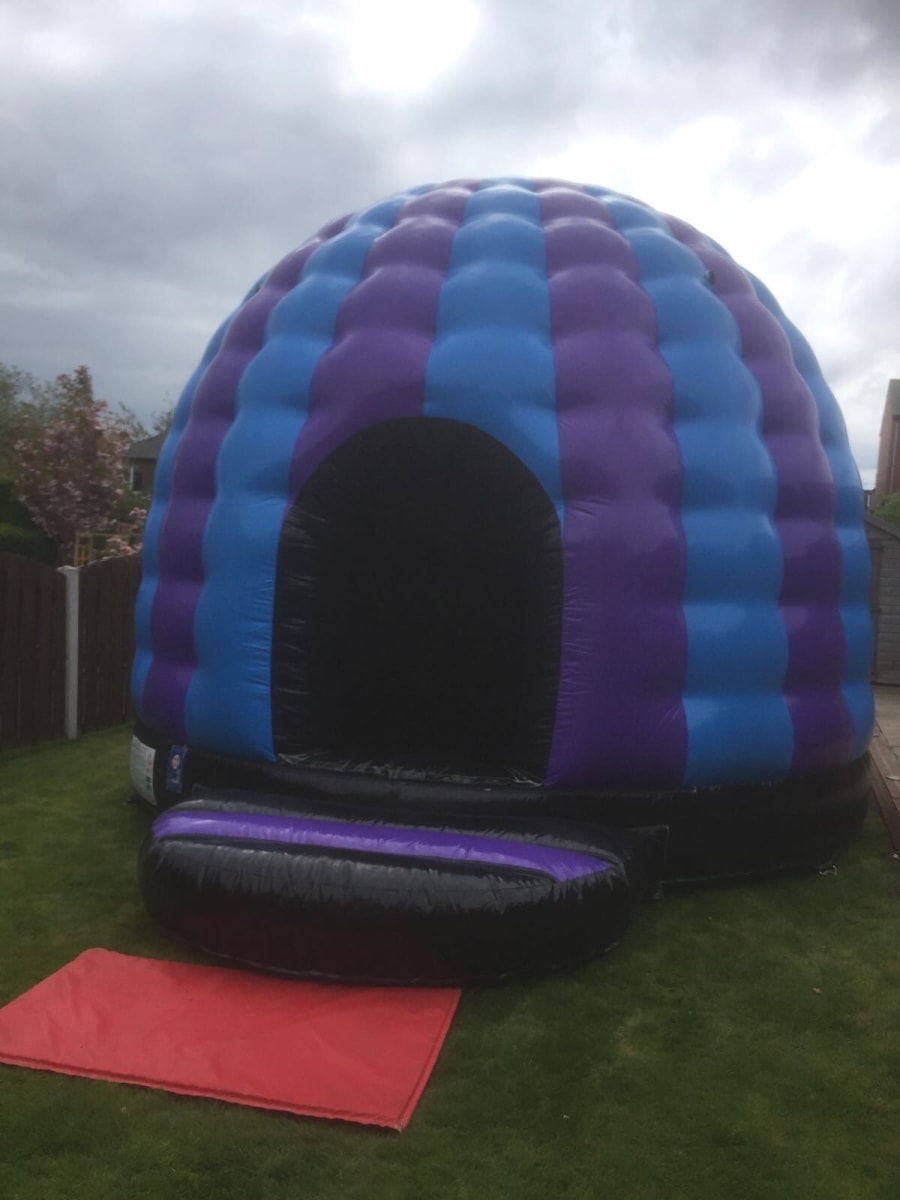 Title: Disco Dome / Party Pod with Rain Cover & Front Step as well as PA system and Disco Lights. Disco Bouncy Castle