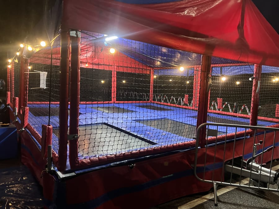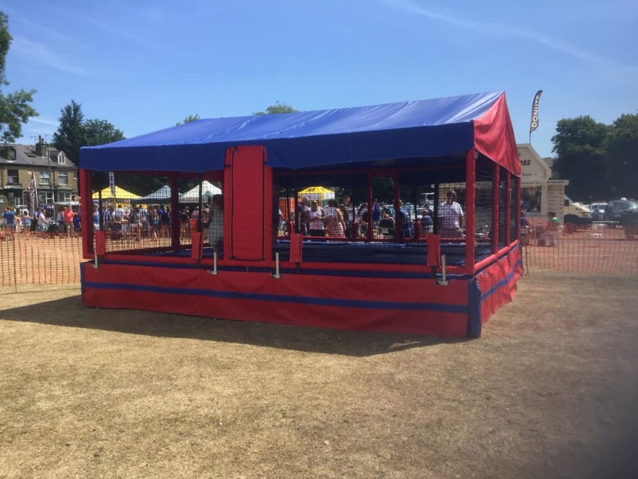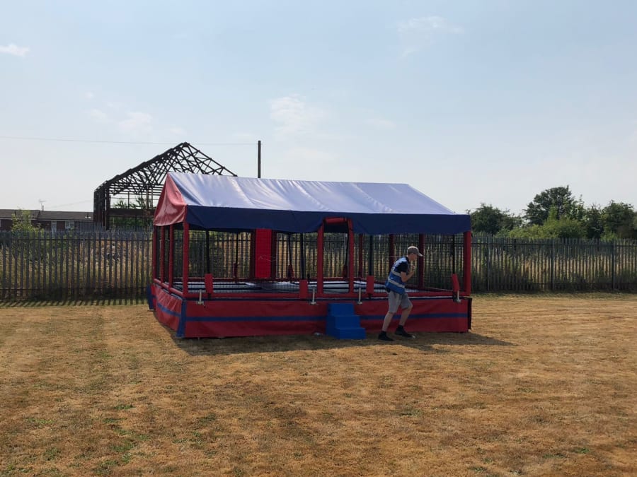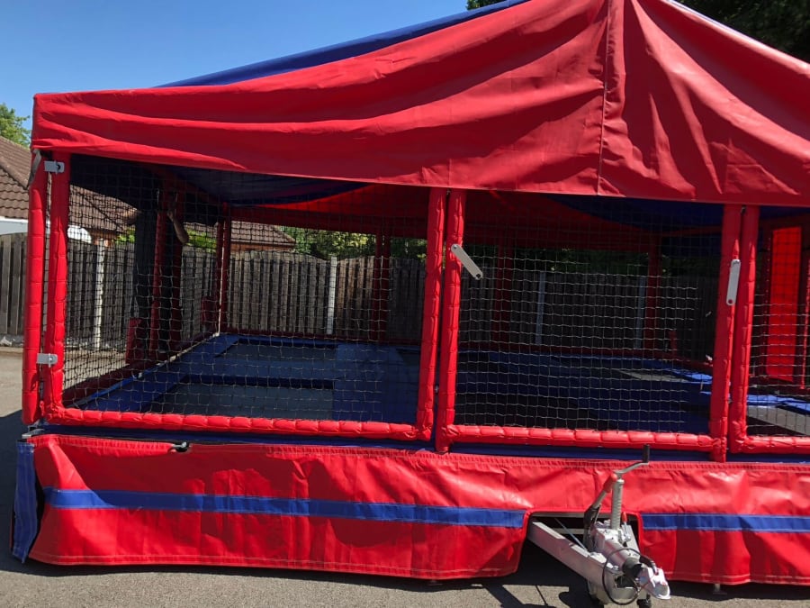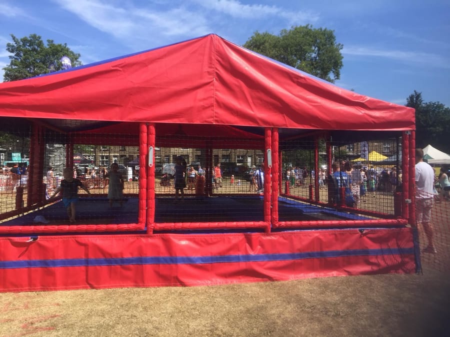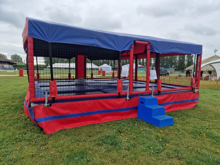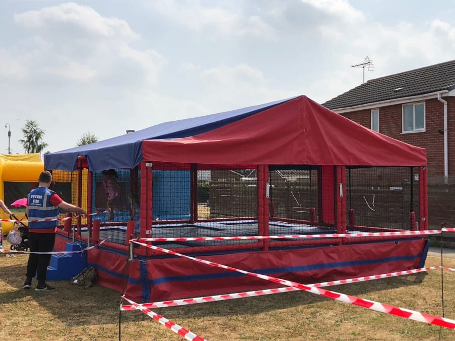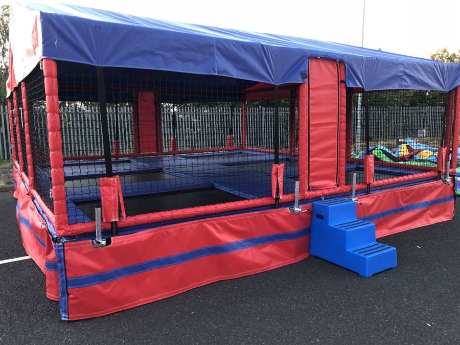 The six-bed trampoline can be set up on grass or hard surfaces and is ideal for events looking to offer something extra for families. Parents can supervise smaller children from the bar in the middle.