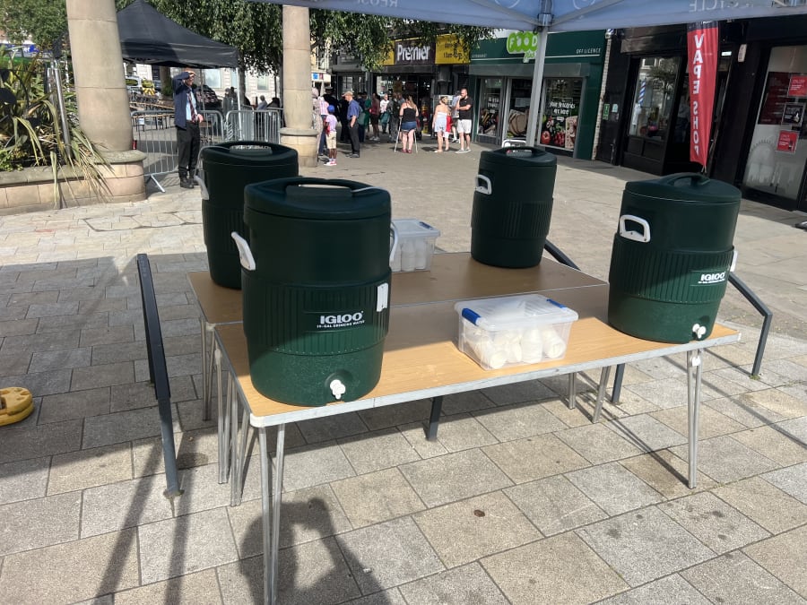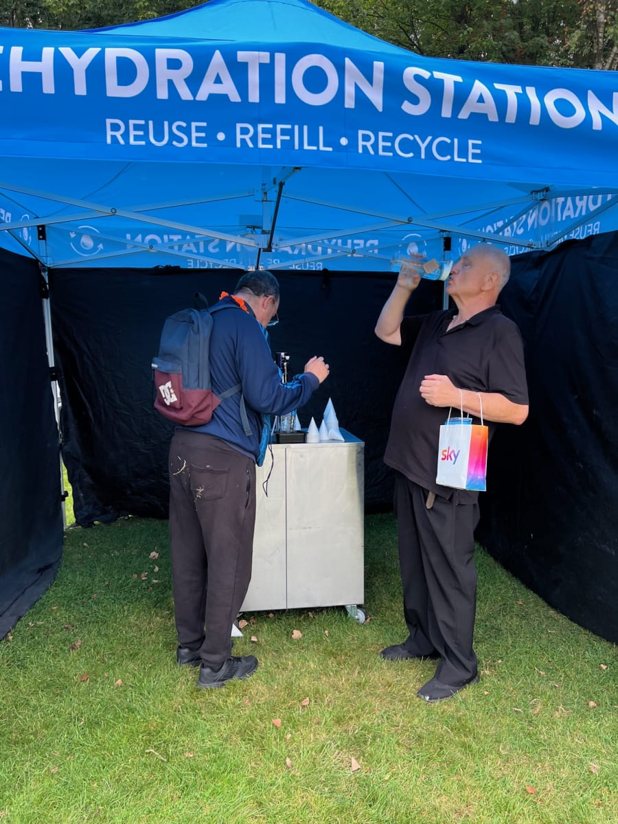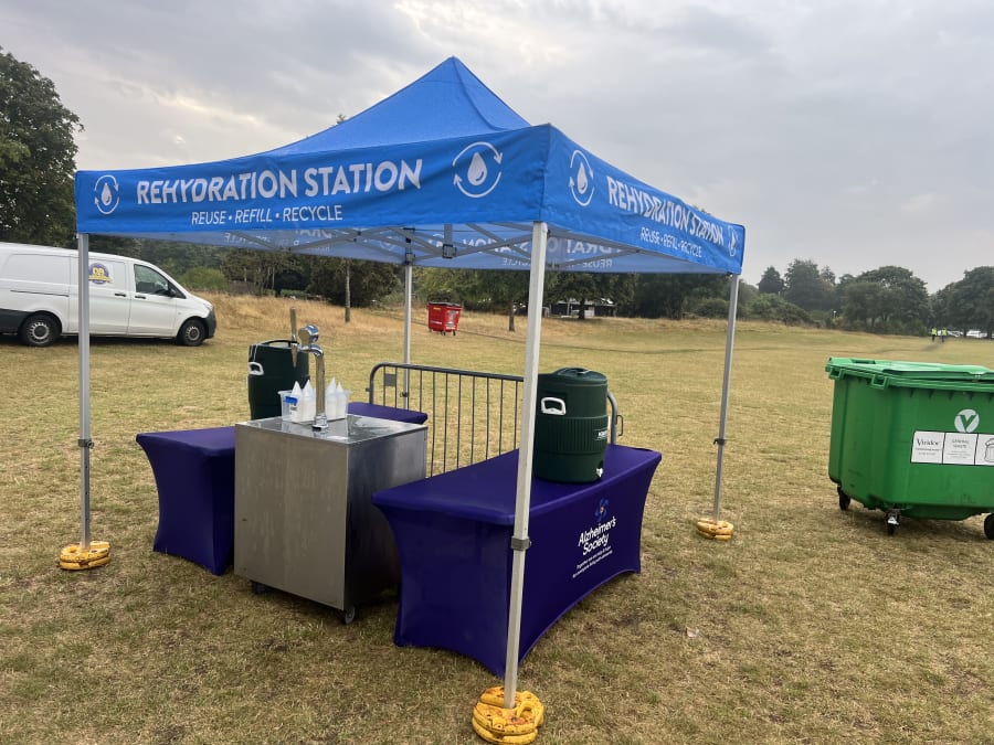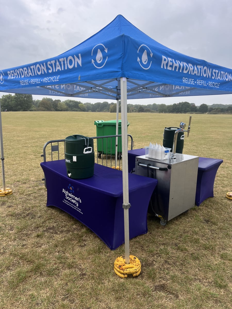 Introducing the ultimate Hydration Station - the perfect solution for providing clean drinking water to a large crowd while minimizing waste and maximizing sustainability. This state-of-the-art station is designed with a marquee and can hold up to 1000 liters of water, making it ideal for use at festivals, charity events, and other large gatherings.