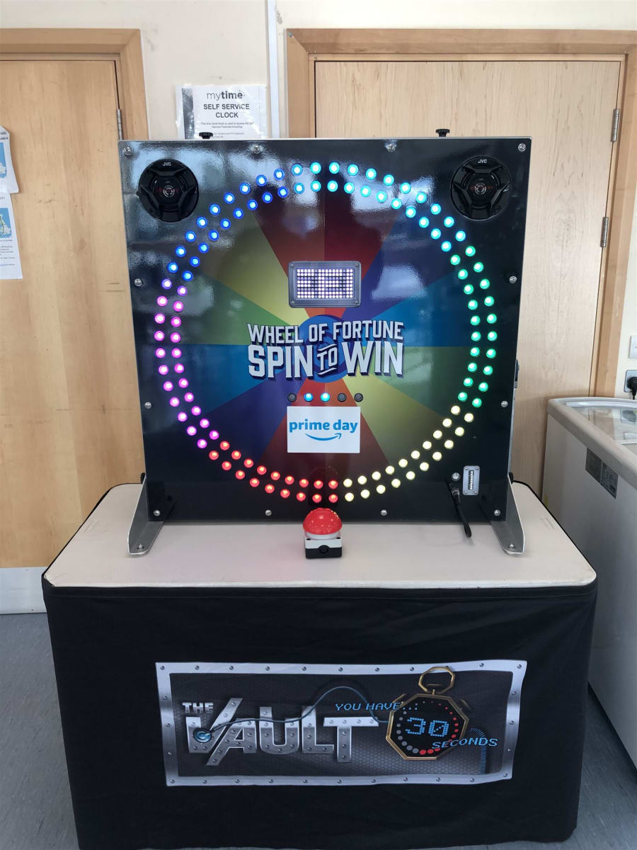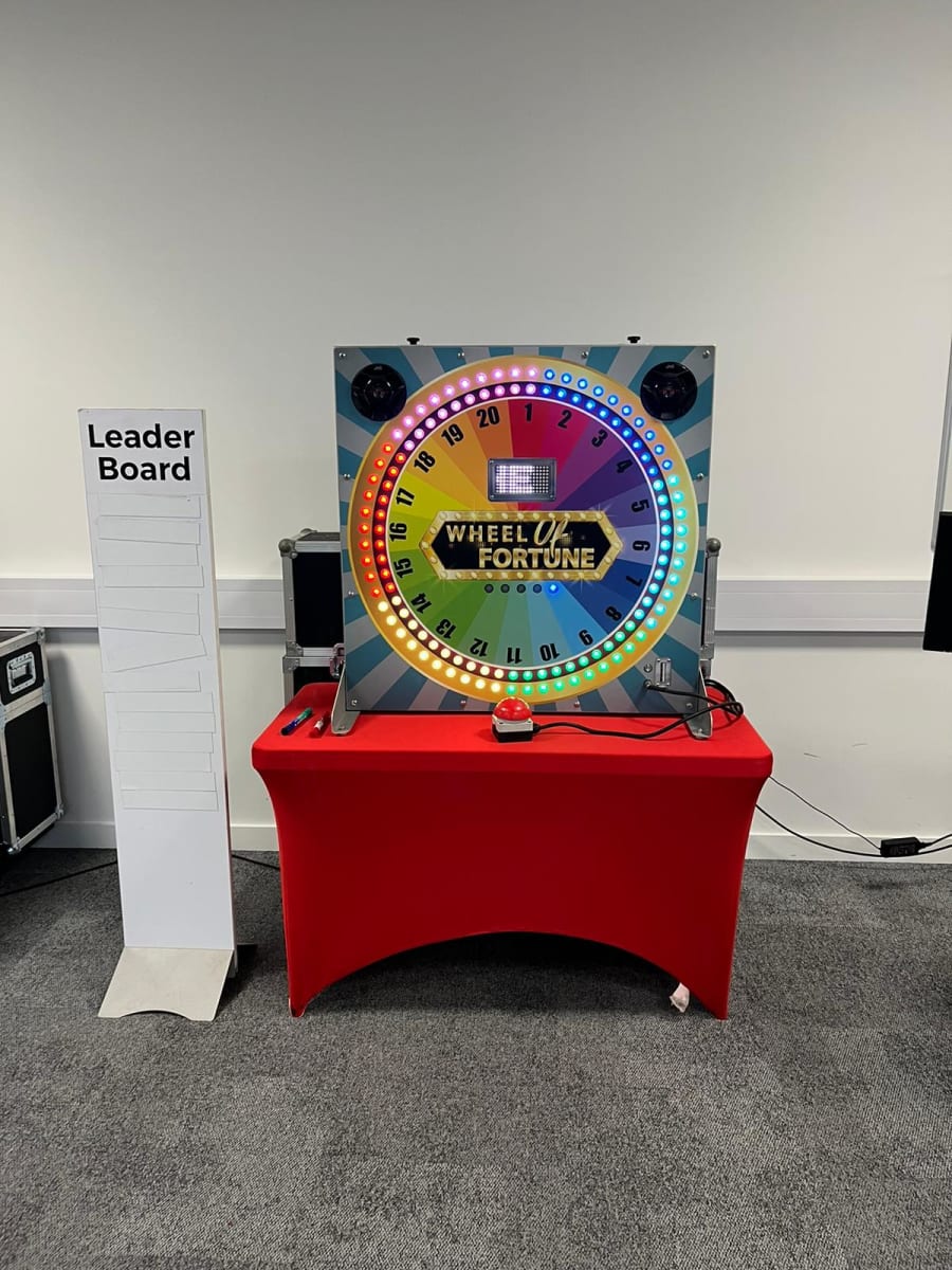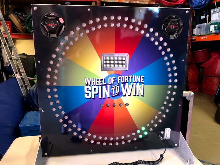 With flashing lights, great sound effects and lots of bright colours adding to the excitement, our electronic wheel of fortune for hire appears to have come from the studios of a big game show on TV.