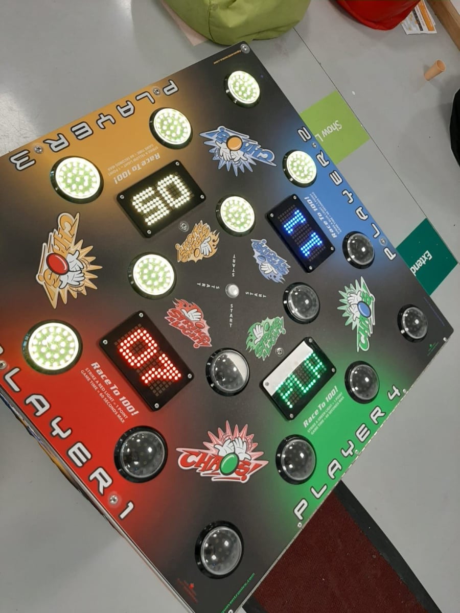 Chaos 4 Player Strike a Light also known as Strike the light is one of the most eye-catching attractions in our range, with flashing neon lights and great sound, similar to our Batak Pro reaction game.