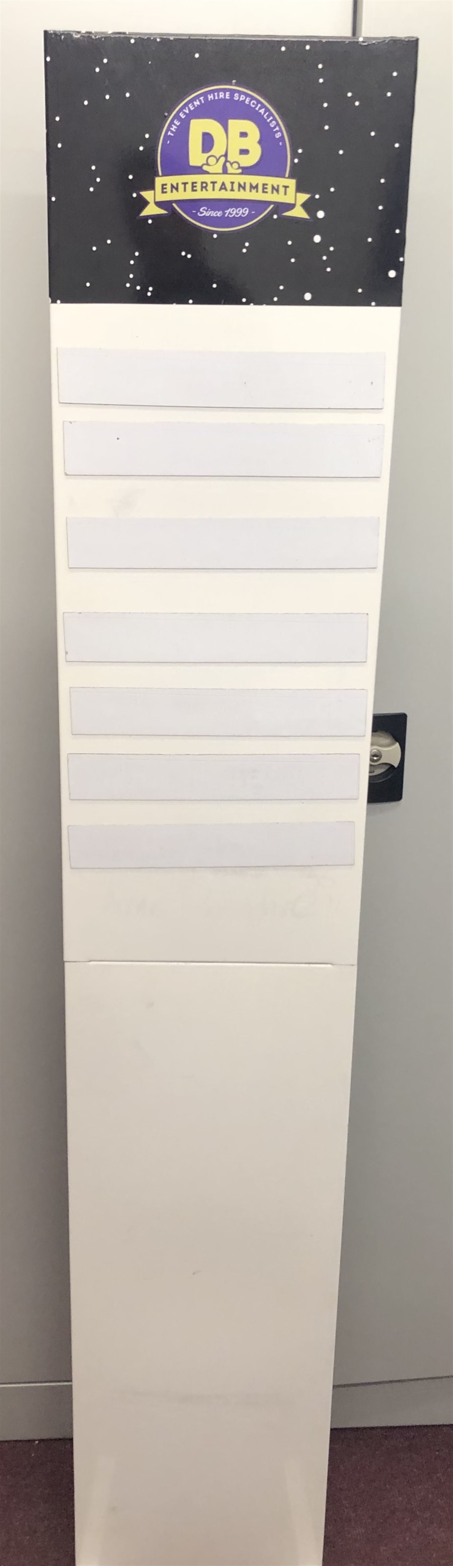 The size of this Leader Board is 300mm (W) x 30mm (Thick) x 1200mm (H) Stand has a footprint of 400mm x 300mm