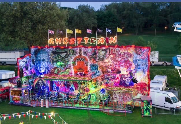 The one in the photos is the one we hire one of the biggest traveling ghost trains the footprint is an impressive 78x18ft