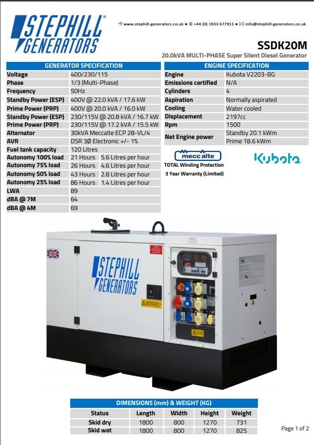 This generator is ran on diesel which the supply of is organised and included in the price of the hire. We understand that the need for power can be sudden and with the increase in temporary structures, we know light and heating are requirements and our generators can be the solution to this problem.