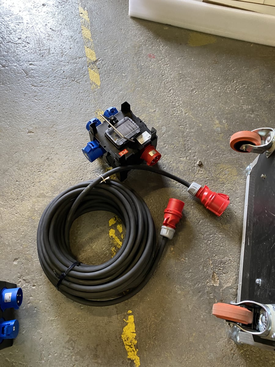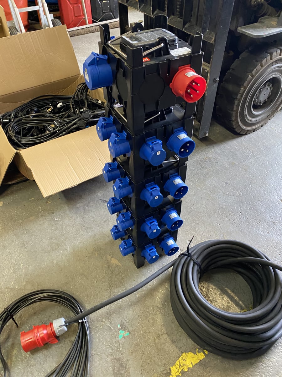 Outputs: 3 x 32A 220-250V~50/60Hz 2P+E IP44 sockets each protected by a 32A 30mA 2P RCBO
