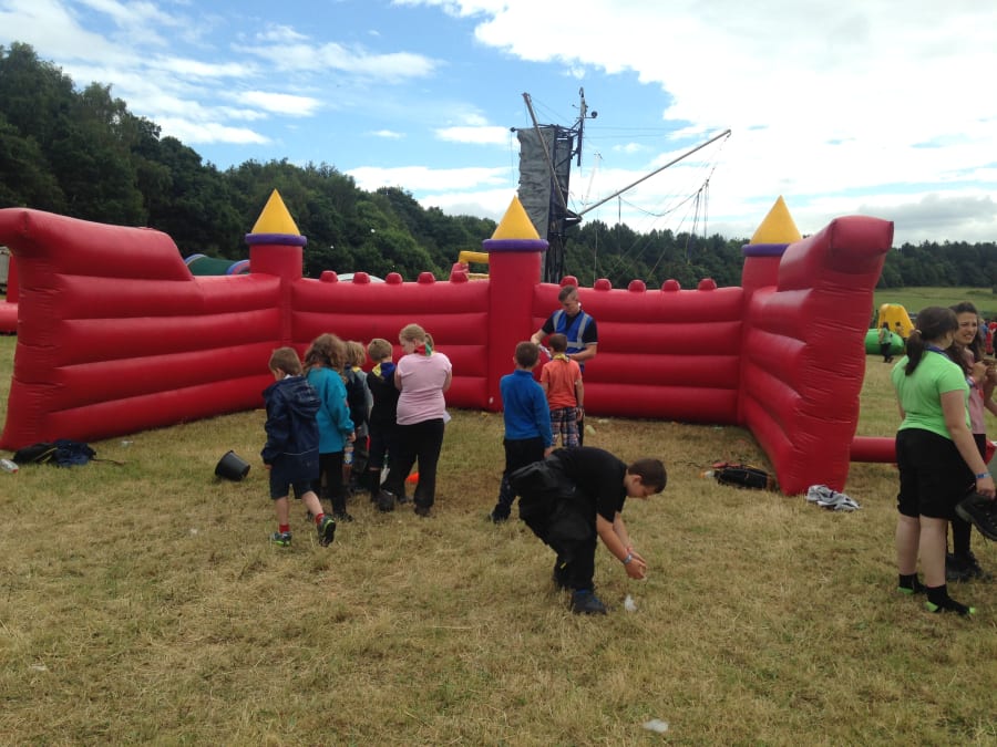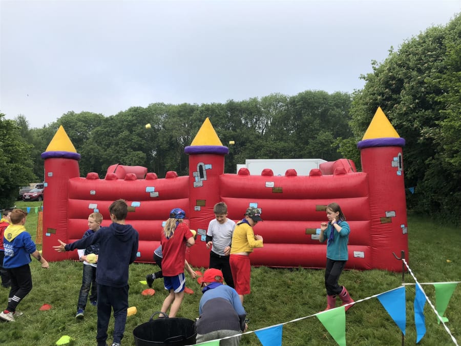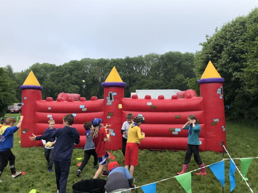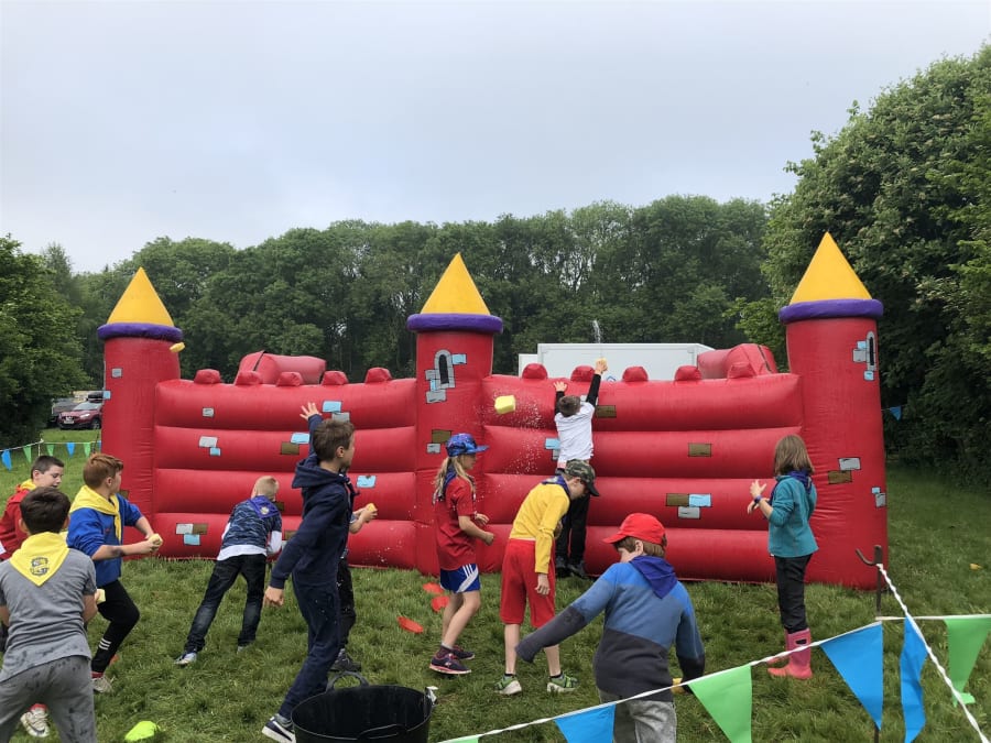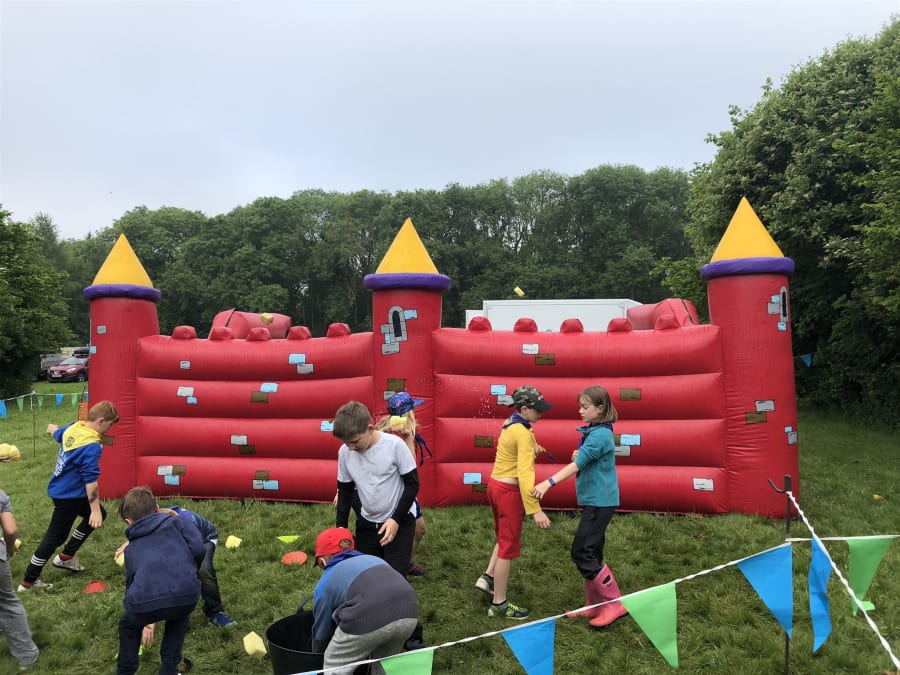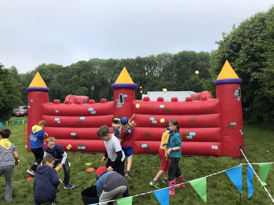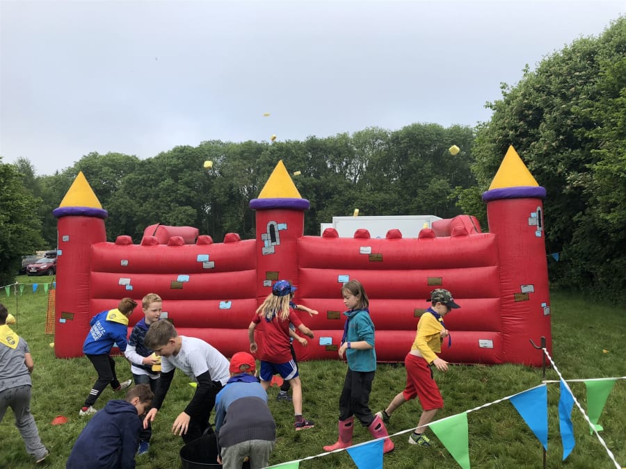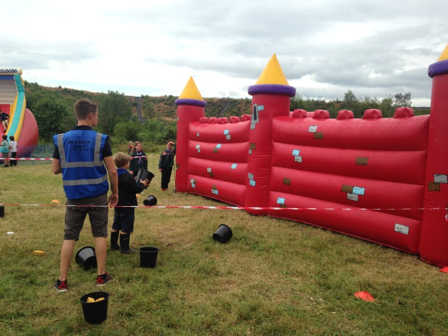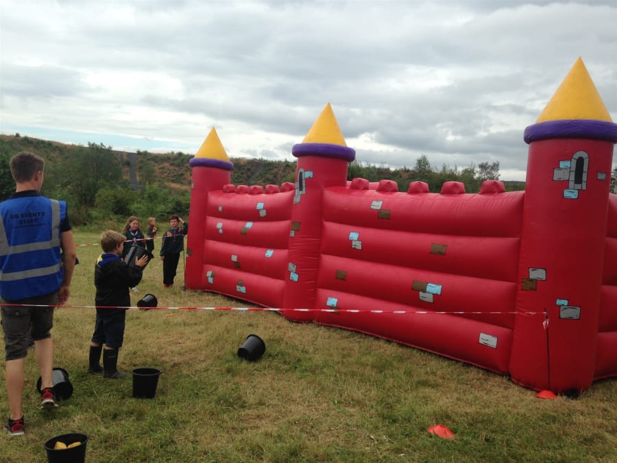 Team members must race to rebuild the damaged part of the wall! With 9 sections to collect, teams will go head to head in order to transport all the parts of the wall to the other side of the castle. Once all pieces have been collected, the team must assemble a cube with their pieces! The team to rebuild their part of the wall will be the winners!