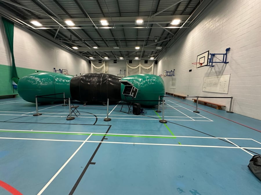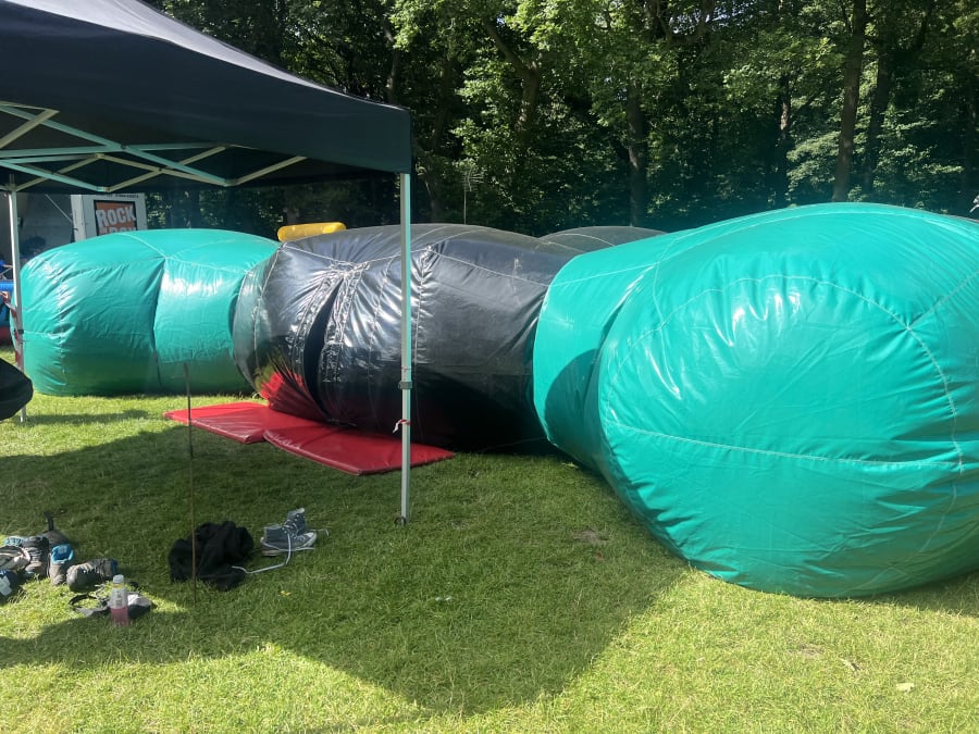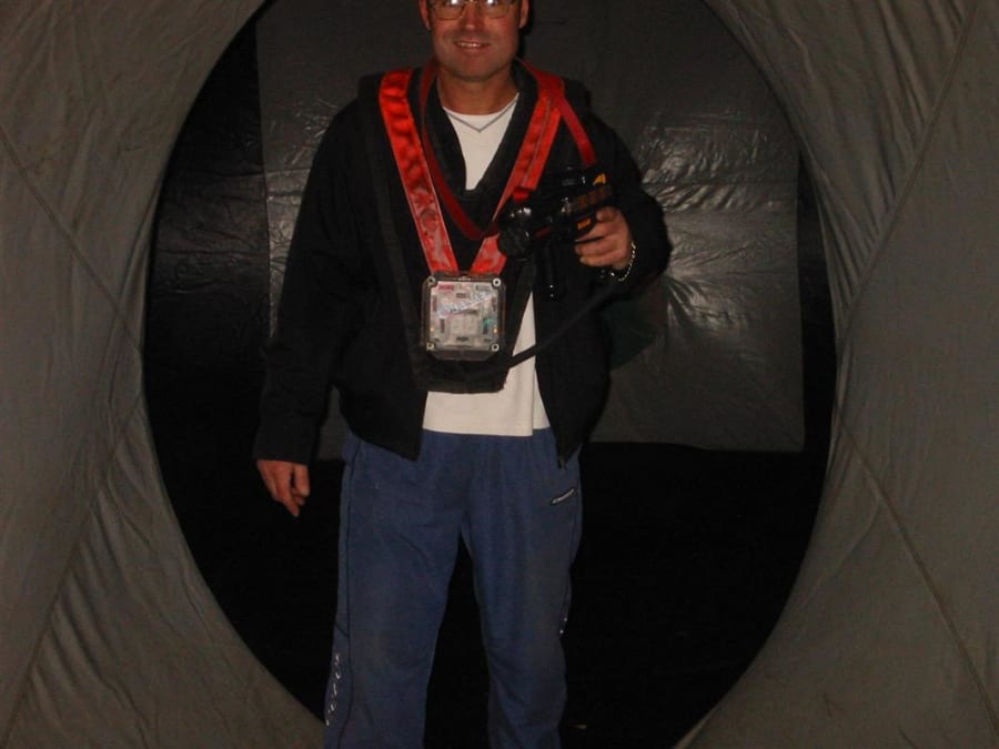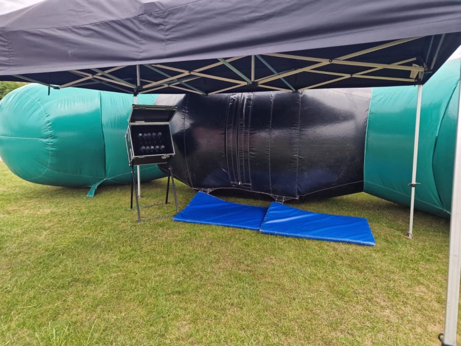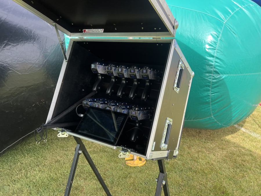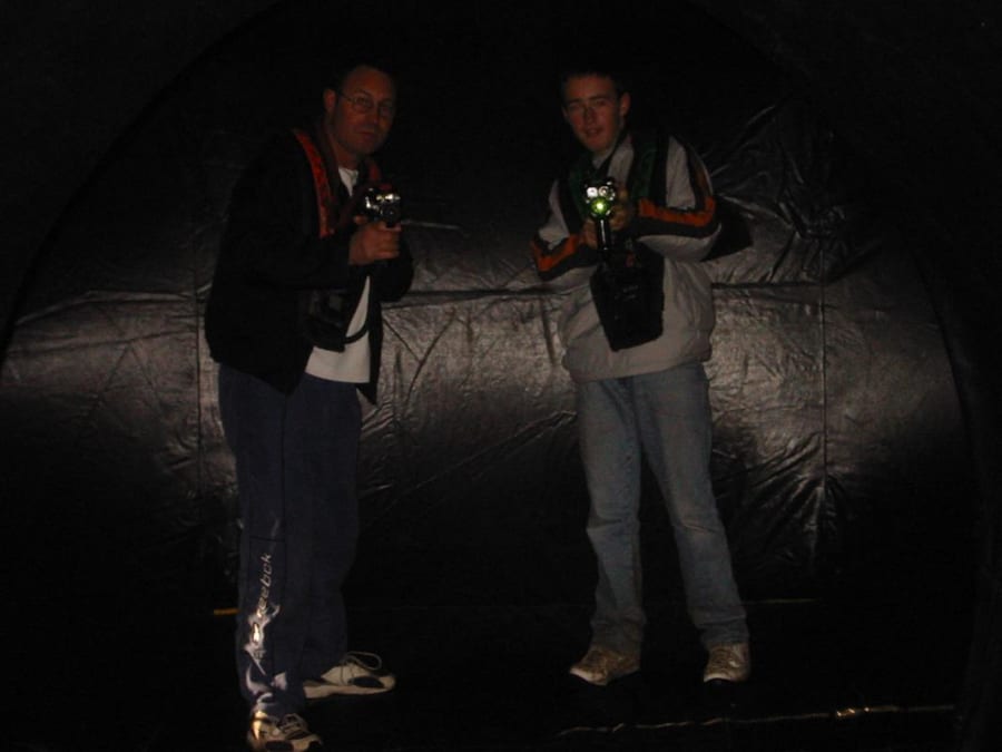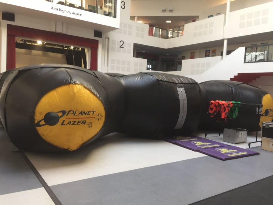Players enter our unique inflatable arena (12m x 12m) which is pitch black inside and takes the form of like an inflatable tent. You can add natural light to it (for those scared of the dark) although this does defeat the object of Quasar. While inside the arena, players battle it out, either as team games or all vs. all.