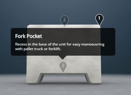 500kg concrete marquee weights are a non-invasive counterweight, designed to be used for securing marquees, stages gazebos and other temporary structures. Installation of the ballast blocks is quick and easy, they can be lifted using a forklift or pallet truck under the unit or via the lifting point on the top of the block.
