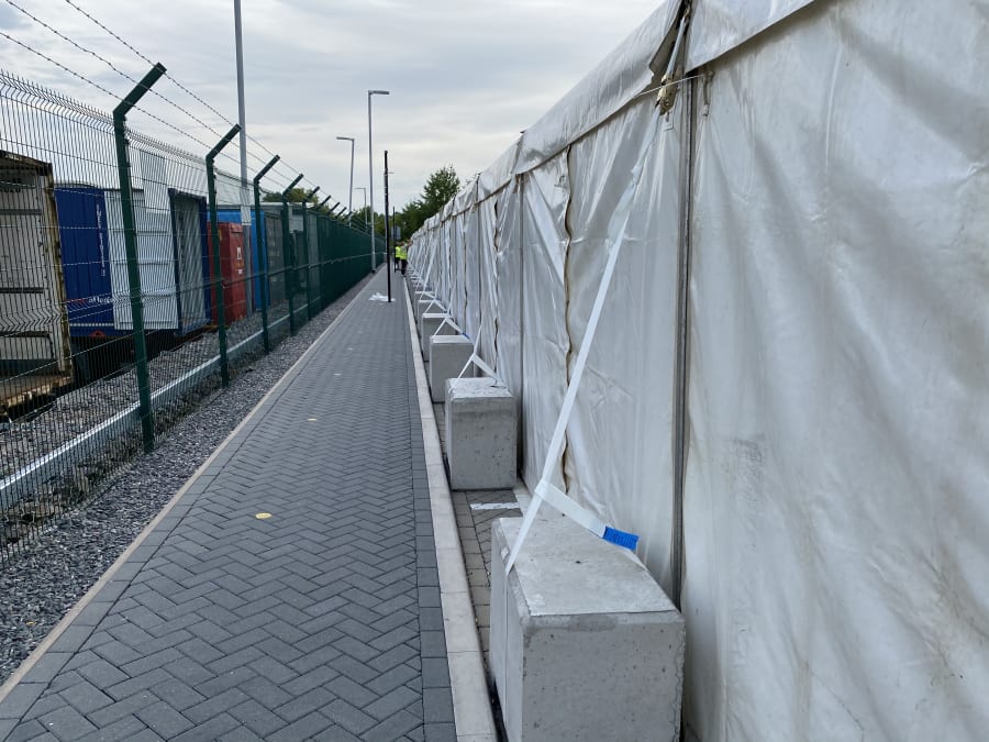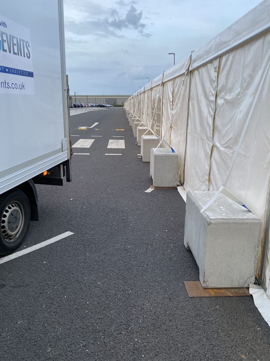 Our 500kg concrete marquee weights provide a secure, non-invasive counterweight solution for anchoring marquees, stages, gazebos, and other temporary structures. Designed for quick and easy installation, these ballast blocks can be moved effortlessly using a forklift, pallet truck, or the integrated lifting point on top of the block.