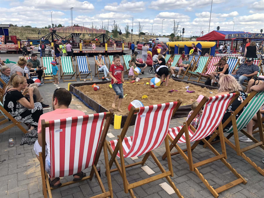 We love putting complete entertainment packages together in the past we have covered may towns summer projects were they have hired one of our sandpits along side deckchairs, giant deck chairs, photo cut out boards, helter skelters and street entertainment contact one of our event coordinators for more details 0114 345 0135 or fil our enquiry page out