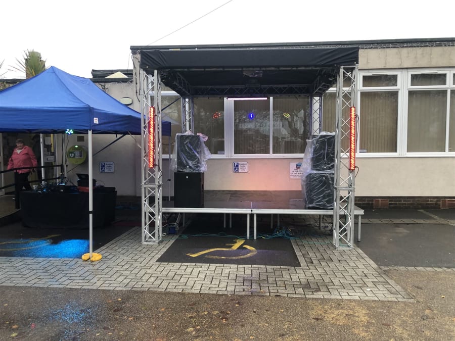 This stage can accommodate un to a 3 piece band, we also hire full PA including Line array systems, lights and audio technicians.