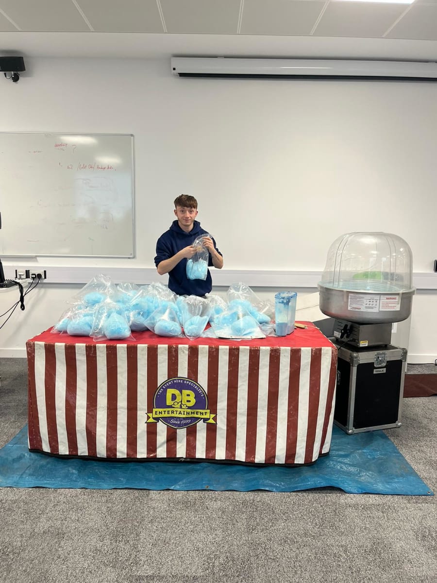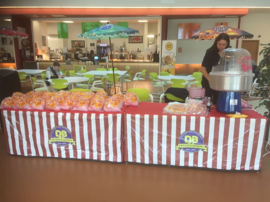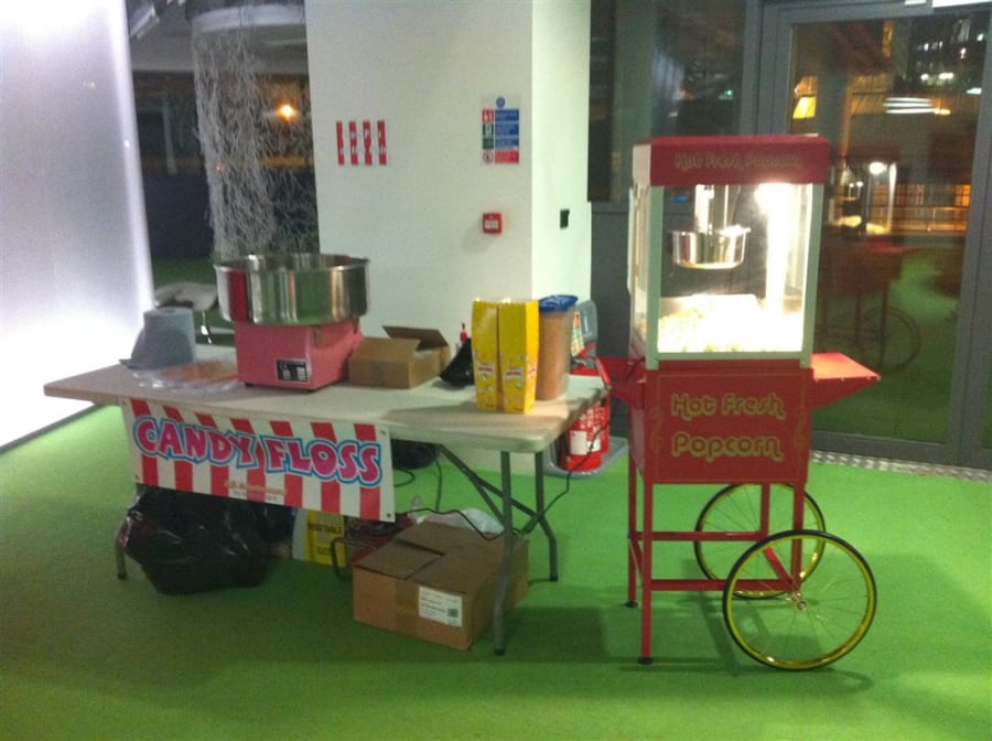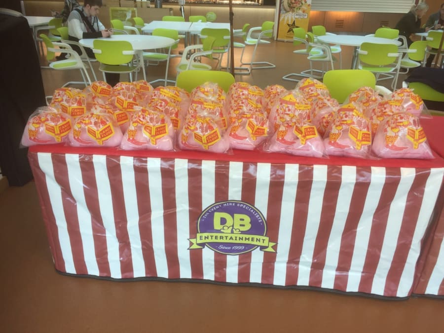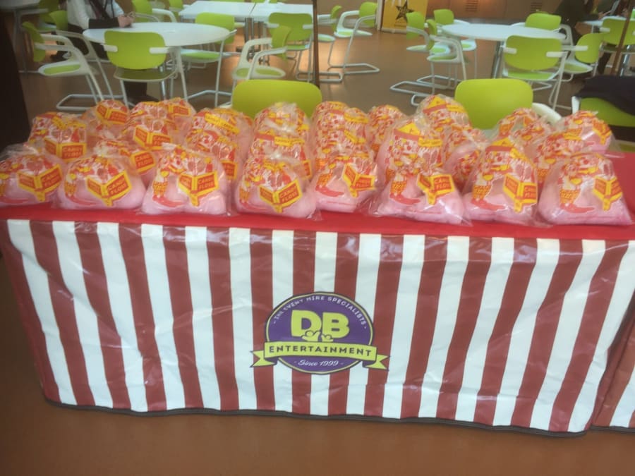 Our Professional Candy Floss machine is fun to hire and comes with a member of staff for a period of up to 3 hours. We can either serve tasty portion in a bag or directly on a stick. This is a must at any funfair themed party or school fair.