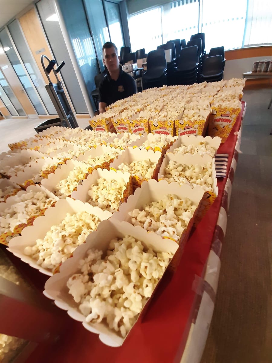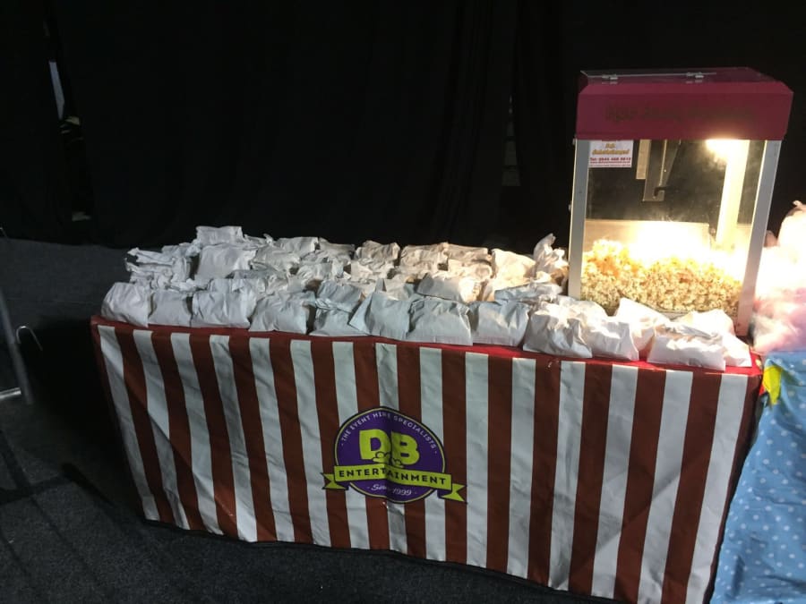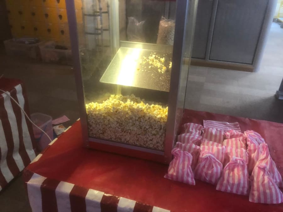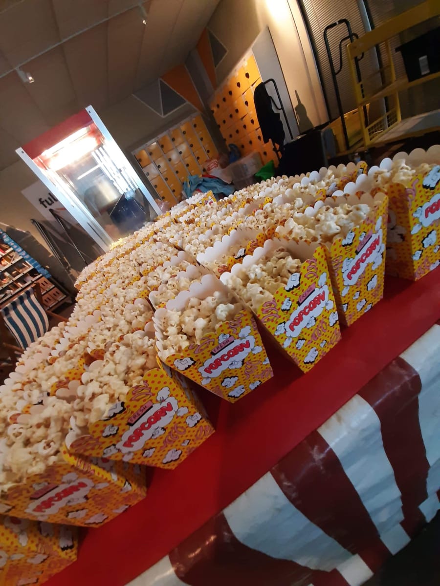 Our Professional Popcorn machine for hire, comes with a member of staff and is for 150 portions for a period of up to 3 hours. We can either serve tasty portion in a bag or in a cinema style box.